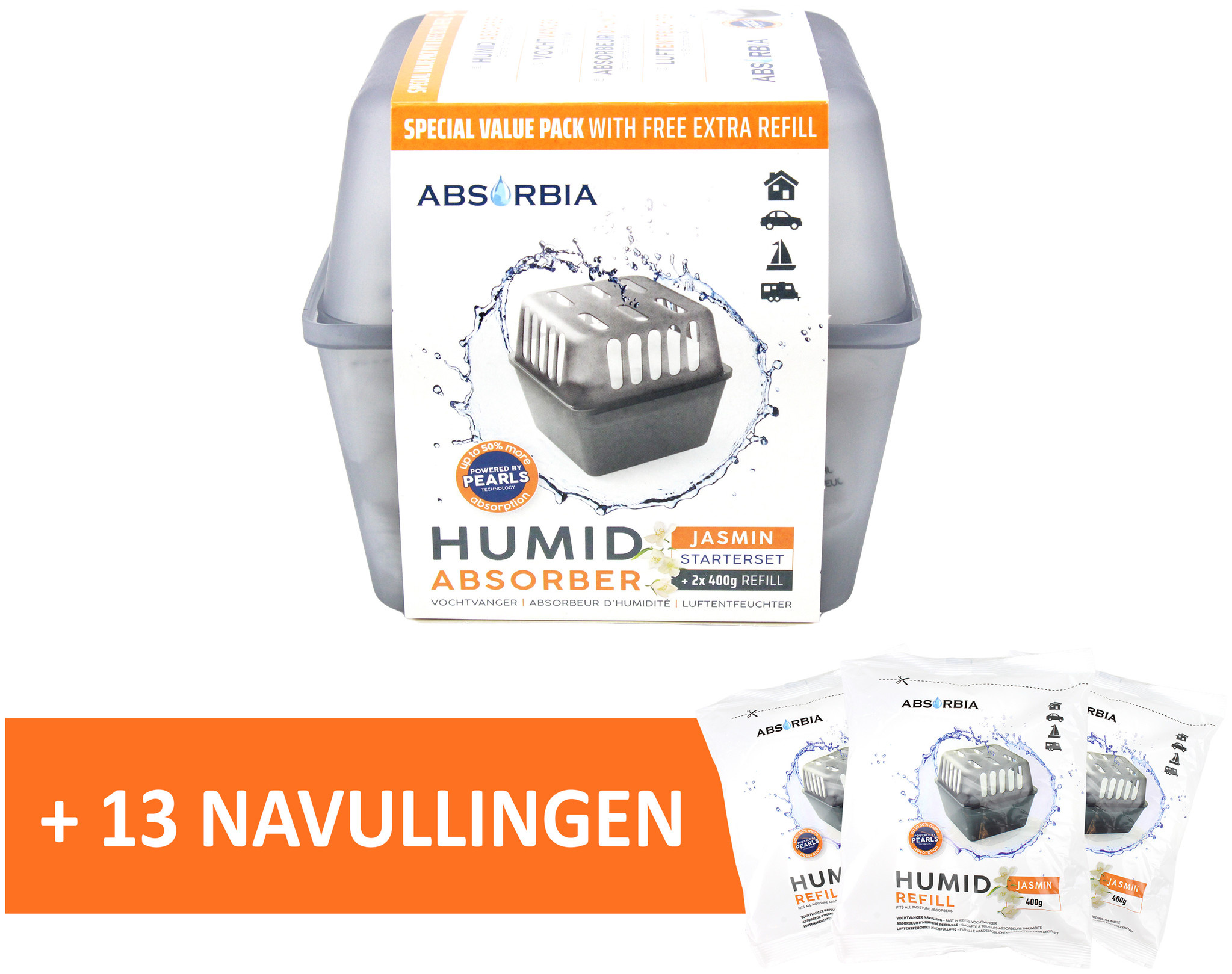 AbsorbiaVochtvanger Starterset 400 gram – Voordeelpakket met 13 Navullingen - Jasmijn