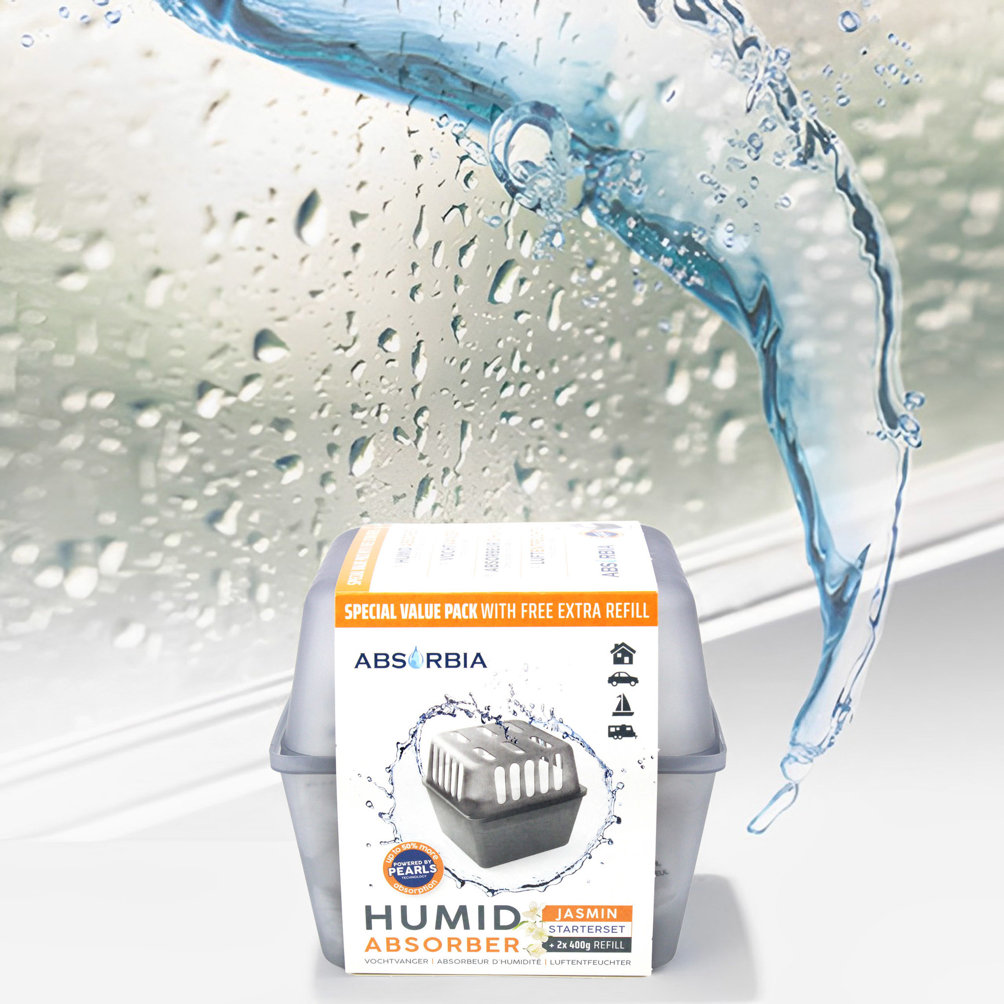 Met deze complete Absorbia® vochtvanger 400 gram starterset met jasmijn geur incl. 13 navulverpakkingen kunt u goed van start gaan met het ontvochtigen van de ruimtes. Het heeft een compact design, past op elke plek, en uitgevoerd met brede voet voor een stabiele plaatsing. De grote luchtsleuven voor optimale luchttoevoer voor de best mogelijke ontvochtiging. Tevens is deze gemakkelijk te installeren en ideaal geschikt voor ruimtes tot 40 kubieke meter. Door het vernuftig ontwerp aan de binnenzijde passen alle navullingen, zowel zakjes als tabletten in de vochtvanger. De half-transparante behuizing zorgt ervoor dat eenvoudig gezien kan worden of de vochtvanger geleegd dient te worden. Eén vulling is goed voor 1 tot 3 maanden gebruik, afhankelijk van de hoeveelheid op te vangen vocht.