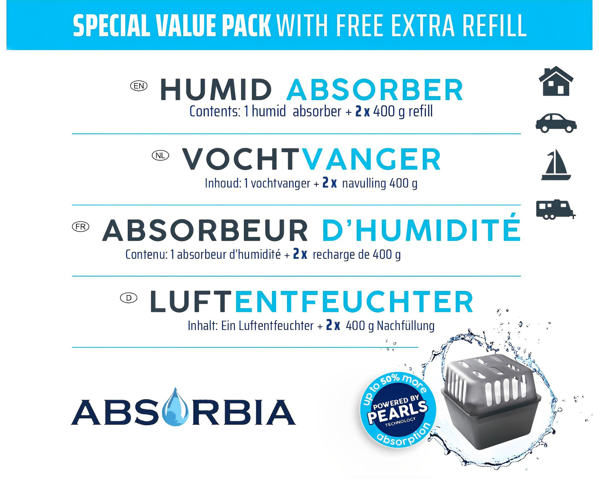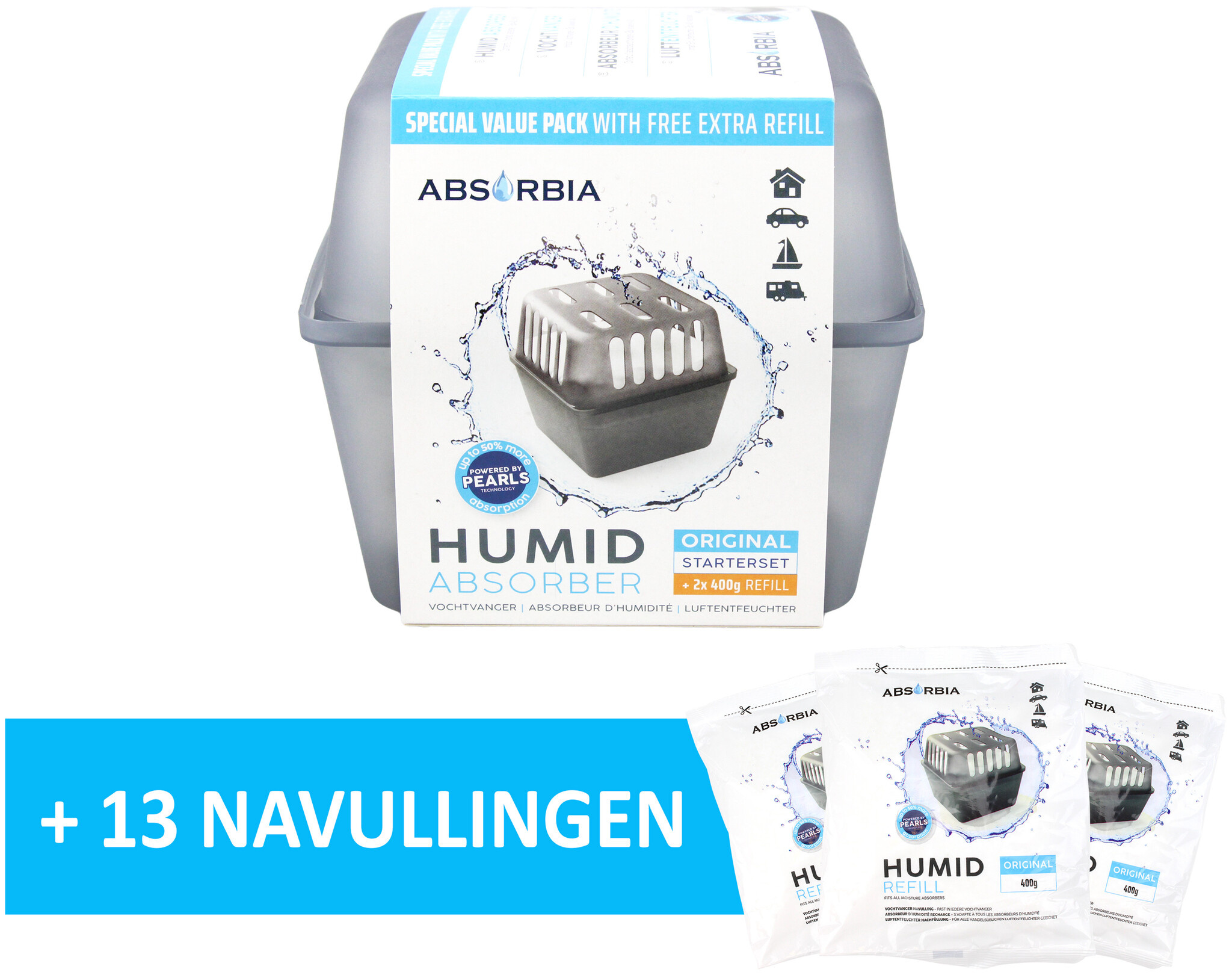 AbsorbiaVochtvanger Starterset 400 gram – Voordeelpakket met 13 Navullingen - Original